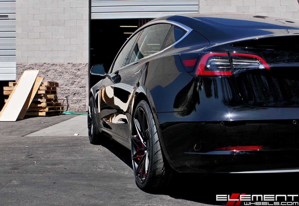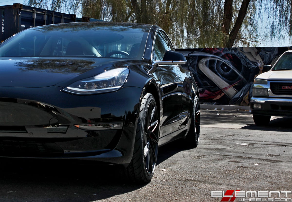20 inch Staggered Ace Alloy Driven Custom Brushed Candy Apple Red w/ Satin Black Face on a 2018 Tesla Model 3 w/ specs