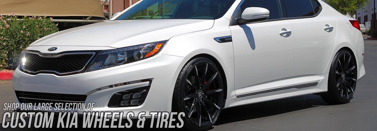Typically the factory wheels that come on you Kia can be boring and plain and upgrading to custom wheels is usually the first modification made to a vehicle by our customers. Whether you are just looking for custom rims or want a full wheel and tire pacakge our fitment experts are here to take care of you. We've made finding new custom wheels for your Kia easy. Using our proprietary search engine simply input your vehicle information above, (Year,Make,Model), and be taken directly to the wheels that fit your Kia! From there you can browse our 1000s of custom wheel options for your Kia including staggered wheels, chrome wheels, gloss black wheels, matte black wheels and much much more. In addition to browsing our online selection you can also take a look at our gallery to see other vehicles like yours to get a feel of how a certain wheel and or wheel size and tire combo will fit. Drop the guess work and take your vehicle to the next level of style and performance and let the custom wheel experts here at Element help you put together the perfect package. A new set of custom Kia rims is only a few clicks away!