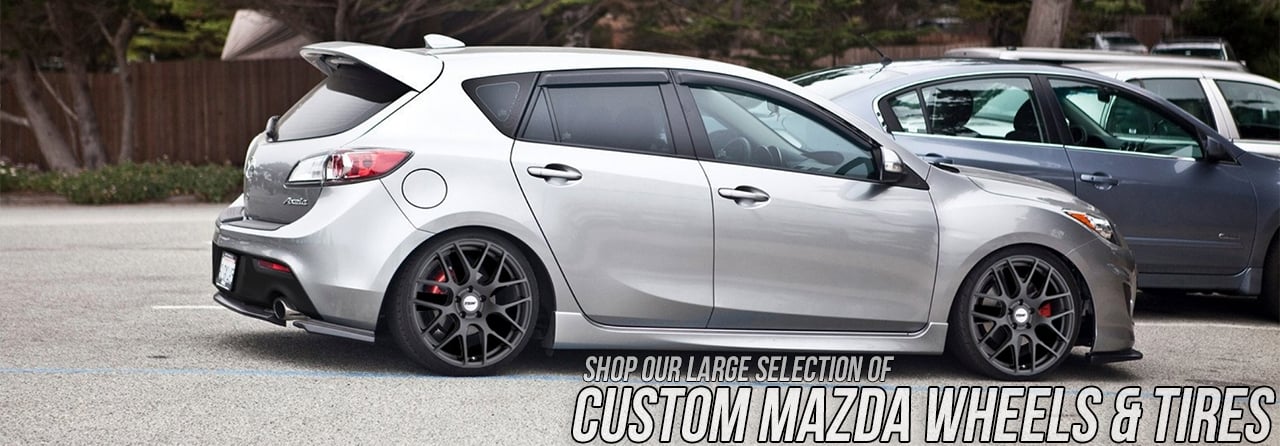 Looking to upgrade you wheels on your Mazda? Typically the factory wheels that come on your Mazda can be plain and boring. We've got the largest online selection of cusotm wheels to choose from. Easily navigate through our site and see the 1000s of different rim options incliuding black wheels, chrome wheels, gunmetal wheels and even custom color options, Whether you are in the market for an entry level wheel or a fully custom set of 3 piece wheels we've got you covered. To get started simply input your vehicle information above, (Year,Make,Model), and be taken directly to the wheels that fit your application! You can also take a look at our gallery of other vehicles like yours to get a feel of how a certain wheel and or wheel size and tire combo will fit. Come let the custom wheel experts package together the perfect package for your specific needs. No more guess work, a new set of Mazda custom wheels is only a few clicks away.
