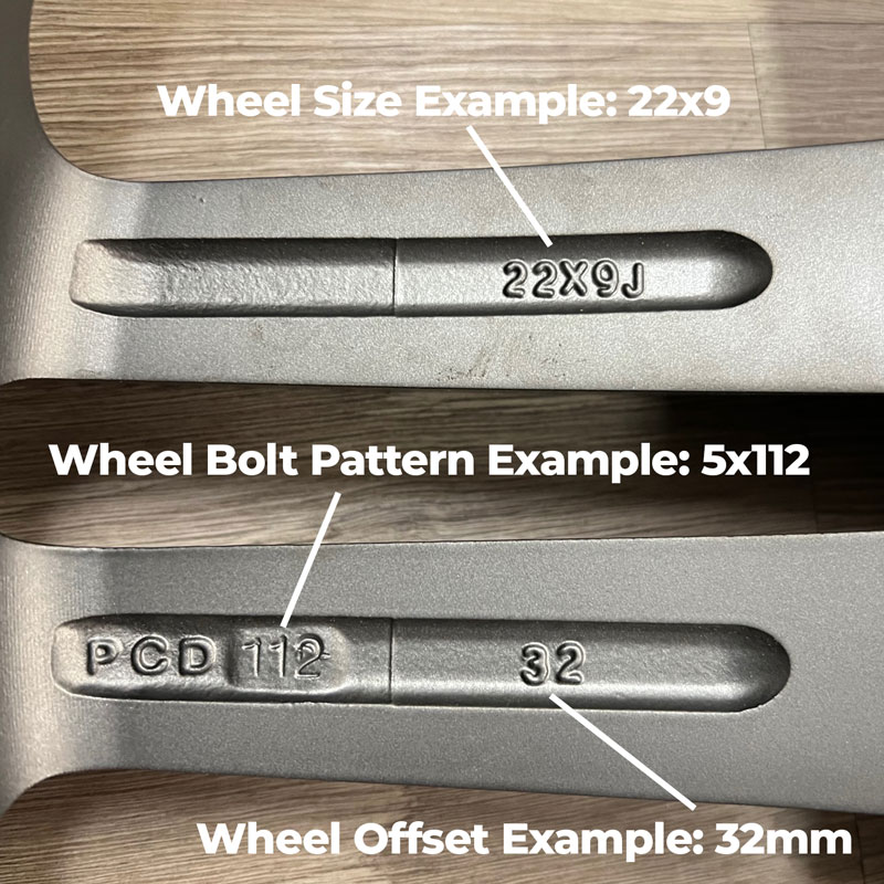 The first 3 can be easy to identify, but the wheel size, bolt pattern, and offset can be a little more complicated. This page is a guid to help you identify where to find that information using the back of the wheel